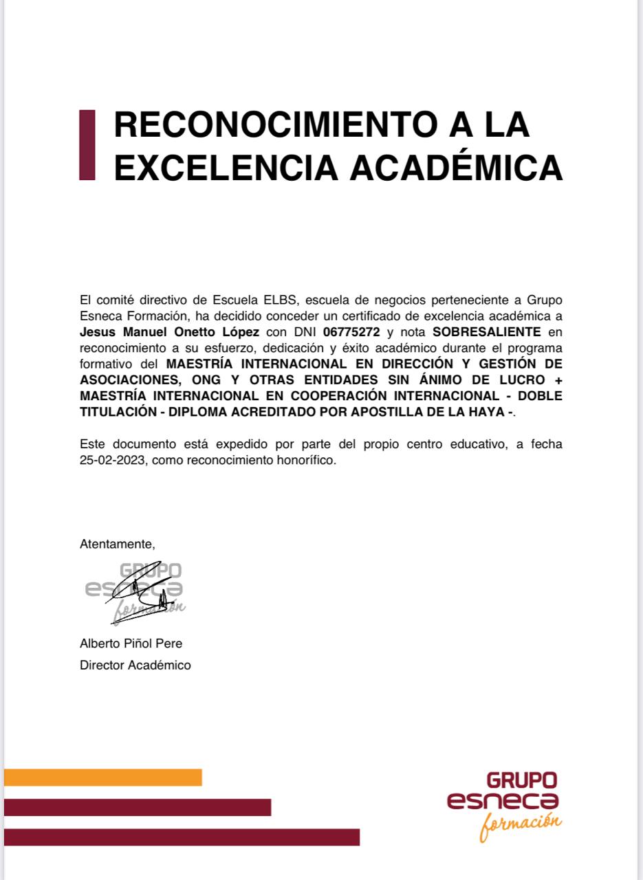 Principales estudios: Calificaciones en Guerra de Superficie y en Ingeniería Mecánica Naval, Comando y Estado Mayor, Inteligencia Naval, Estrategia y Política. Maestría en Desarrollo y Defensa Nacional, Maestría en Administración Marítima, Portuaria y Pesquera, Maestría Internacional en Cooperación Internacional, Maestría Internacional en Dirección y Gestión de Asociaciones, ONGs y otras administraciones sin animos de lucro.